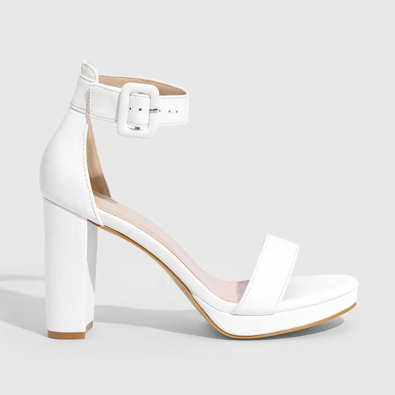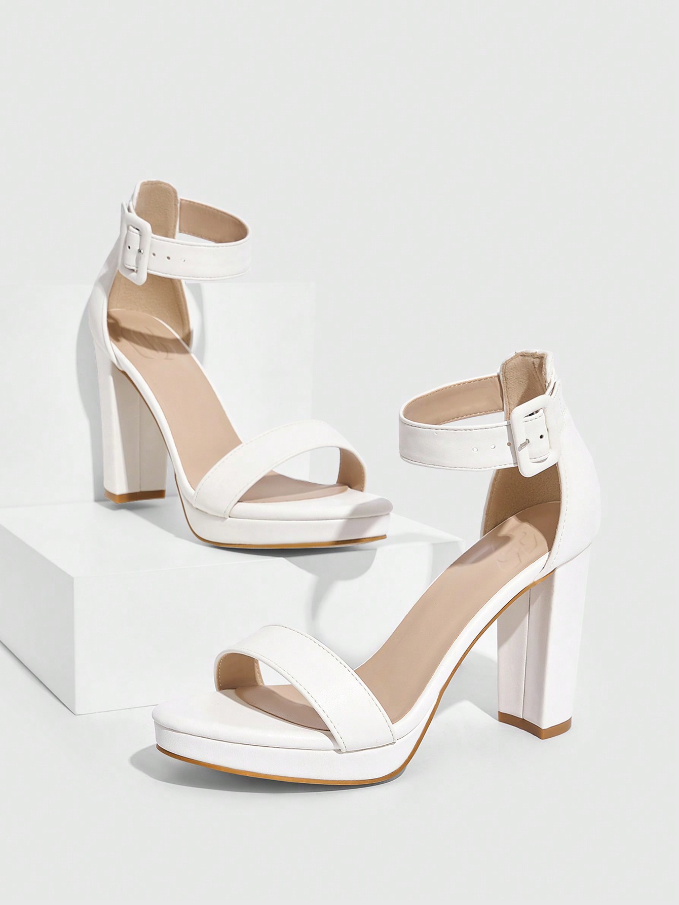 Women's White Platform Block Heel Sandals with Ankle Strap - Elegant Party Wedding Formal Dress Heels
