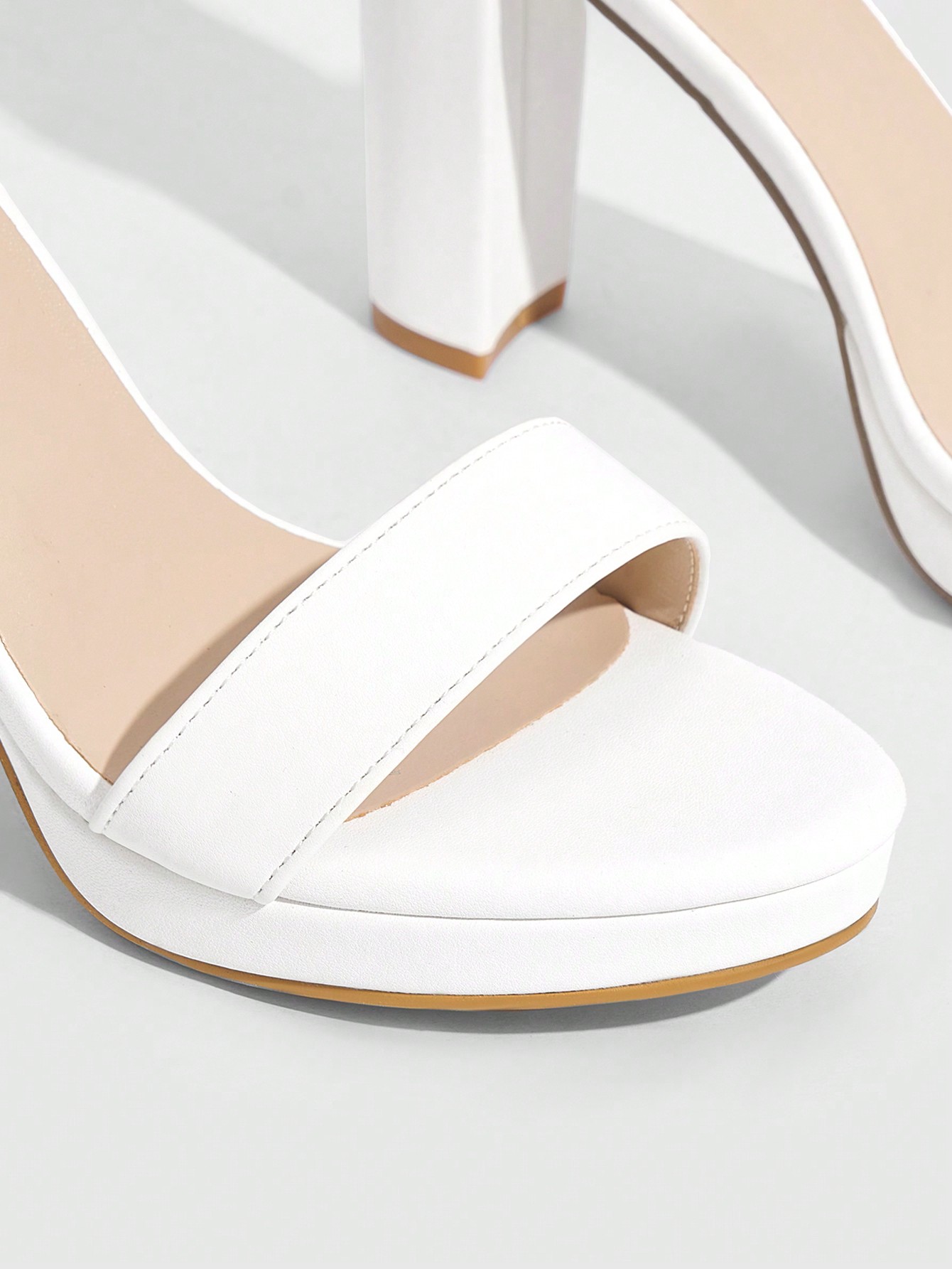 女士优雅白色一字带粗跟防水台高跟鞋 婚礼宴会气质礼服凉鞋伴娘婚鞋