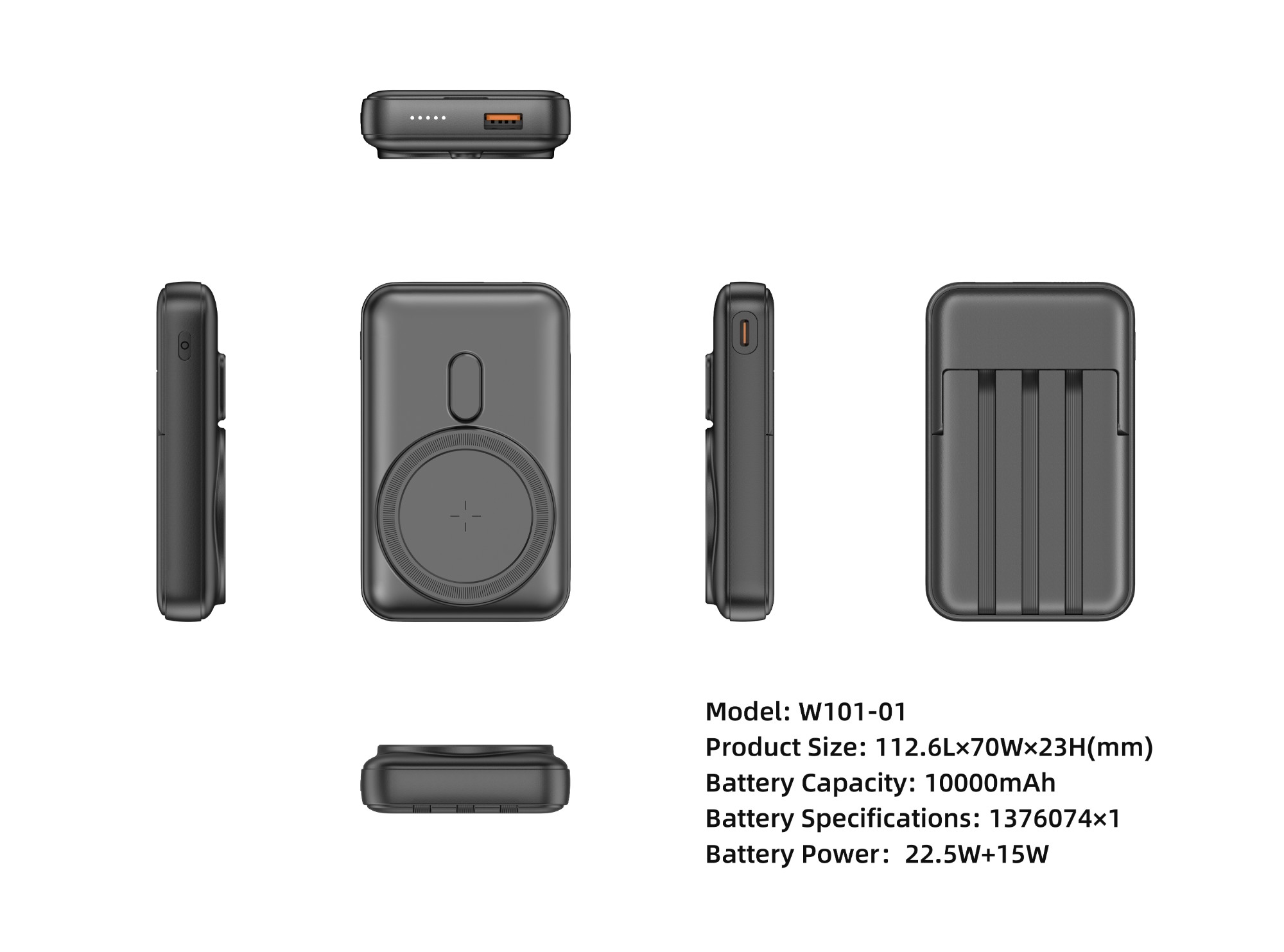 ✅ 大容量 + 多充协议:10000mAh 足量电芯,支持 22.5W PD/QC 快充,15W 磁吸无线充,有线无线双模式,苹果安卓设备全兼容。 ✅ 自带三线 告别杂乱:内置 Type-C、Lightning、USB 三条充电线,无需额外带线,出门即充,轻松满足多设备同时充电。 ✅ 创新支架设计:自带可折叠手机支架,追剧、视频通话时解放双手,充电 + 观影两不误,通勤、追剧更舒适。 ✅ 多接口高效输出:支持 USB/Type-C 多口输出,Type-C 双向快充,输入 / 输出功率拉满,充电更高效。 ✅ 轻薄便携 配色可选:尺寸 112.6*70*23mm,掌心大小,轻松揣进口袋;商务休闲都适配。