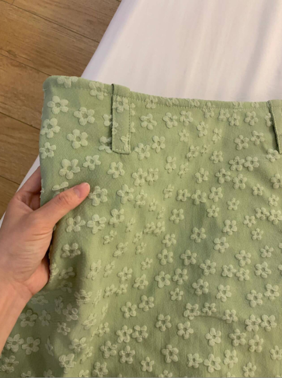 Sweet and spicy girl 3D little flower mint green half-length skirt for women, summer high-end temperament, retro slim short skirt