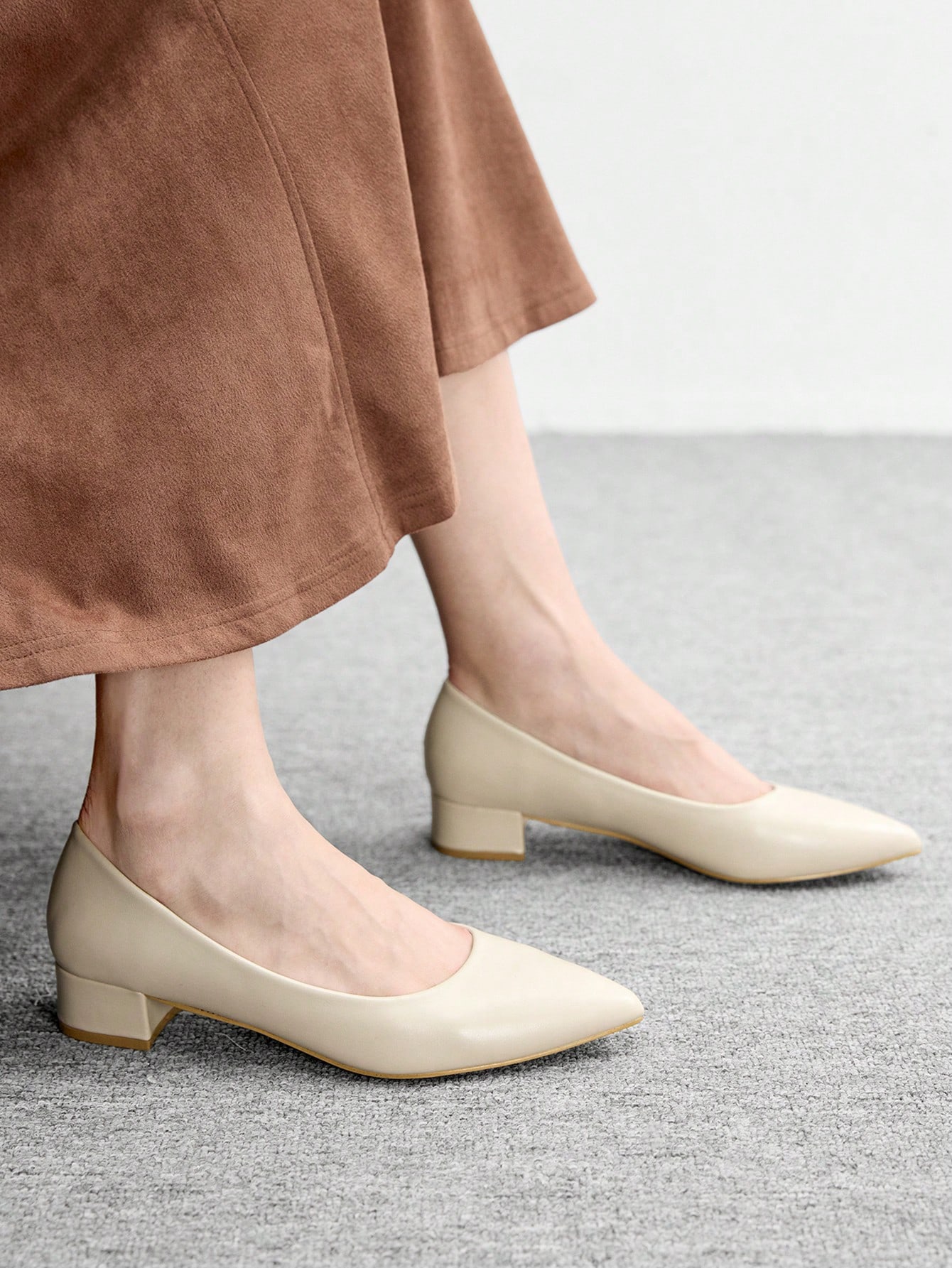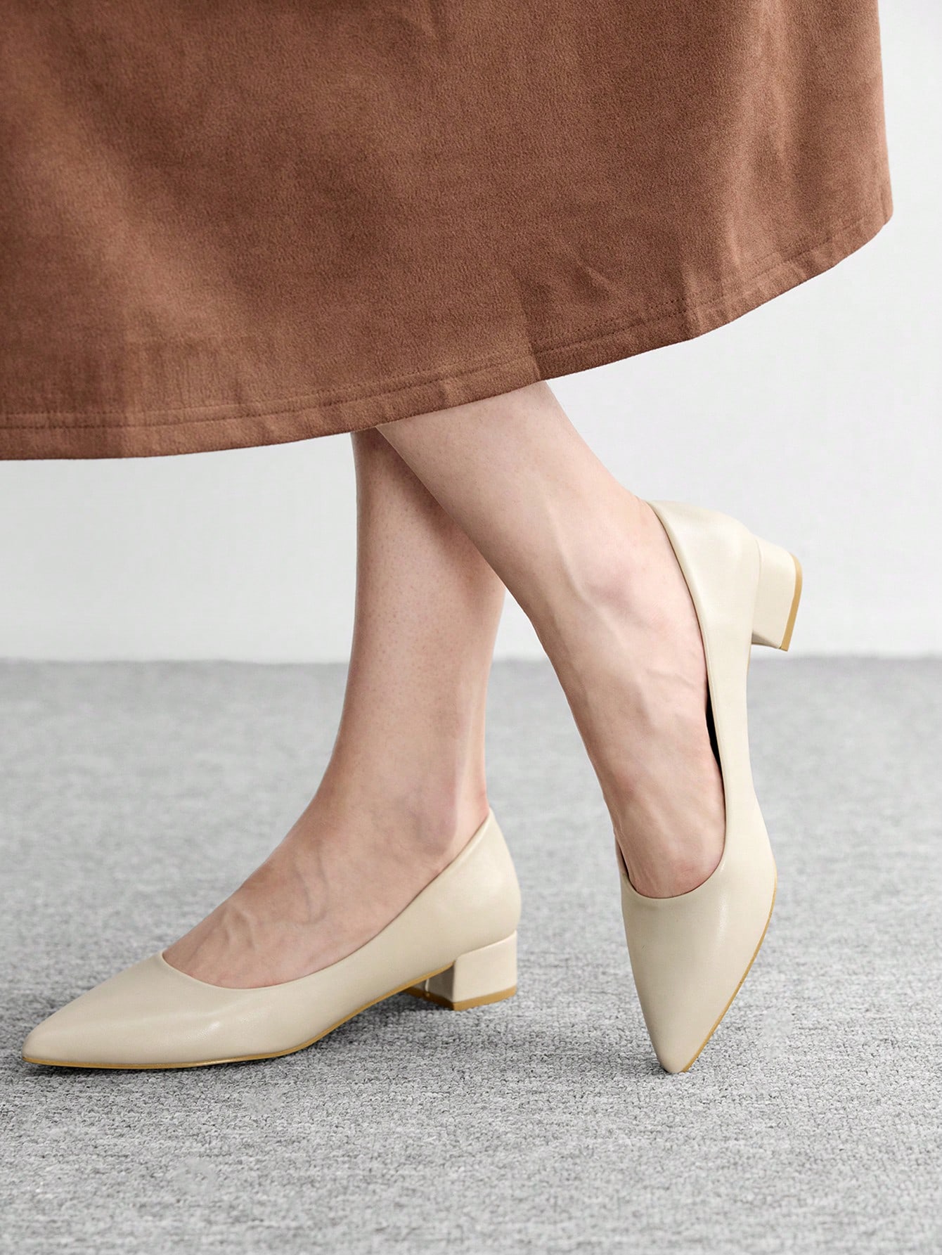 Women's Ivory Pointed Toe Block Heel Pumps Elegant Office Party Bridal & OL Work Shoes