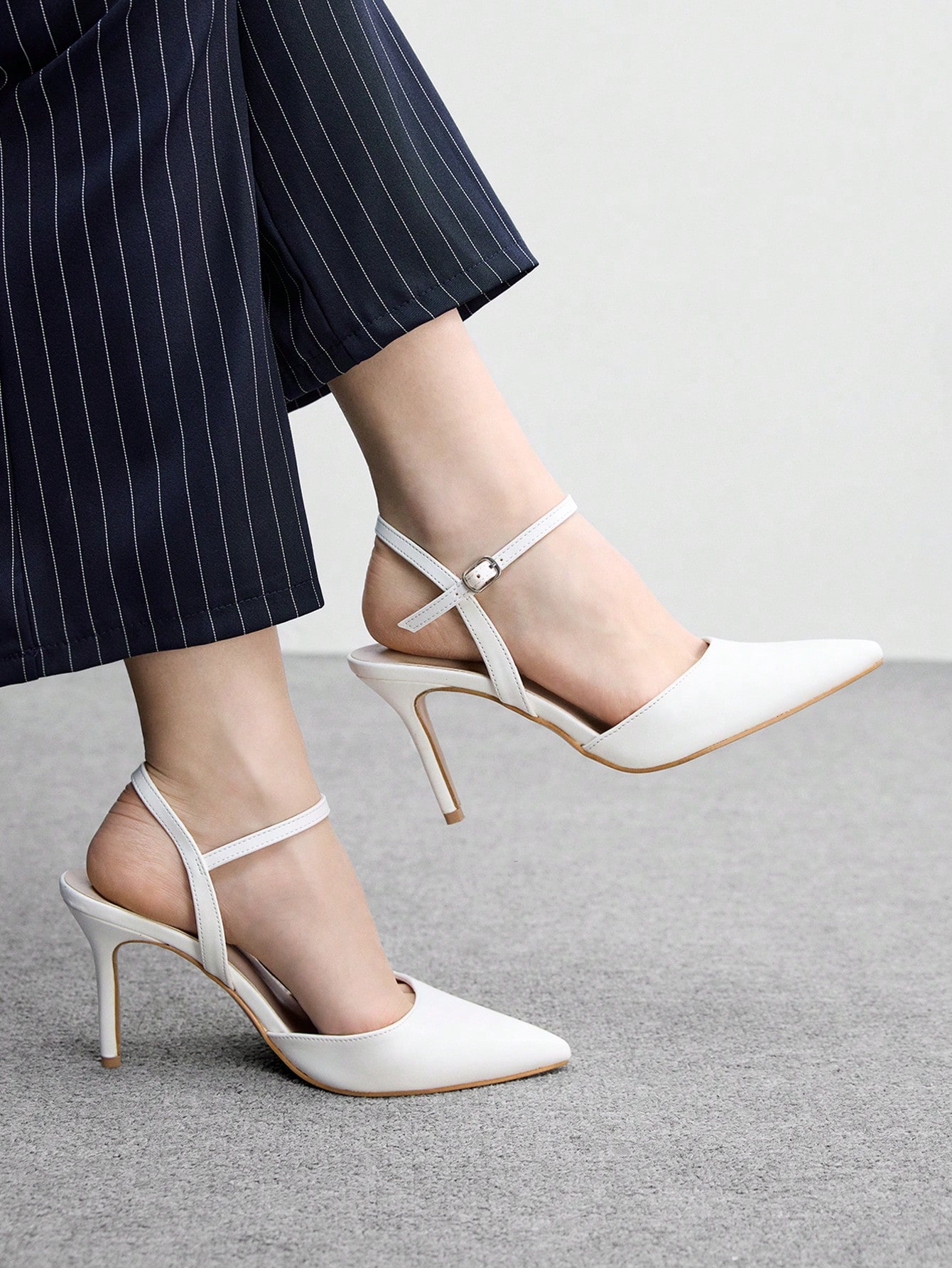 Women's White Pointed Toe Stiletto Heels with Ankle Strap - Elegant Office Party Wedding Bridal Dress Pumps